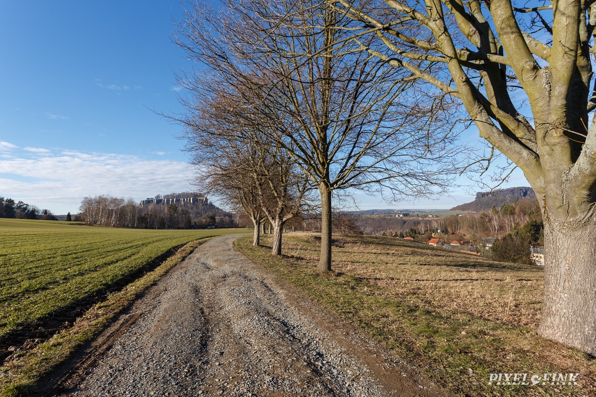 Königstein, Lilienstein, Pfaffendorf, Pfaffenstein, Spätwinter, Sächsische Schweiz, Wanderweg, Winter