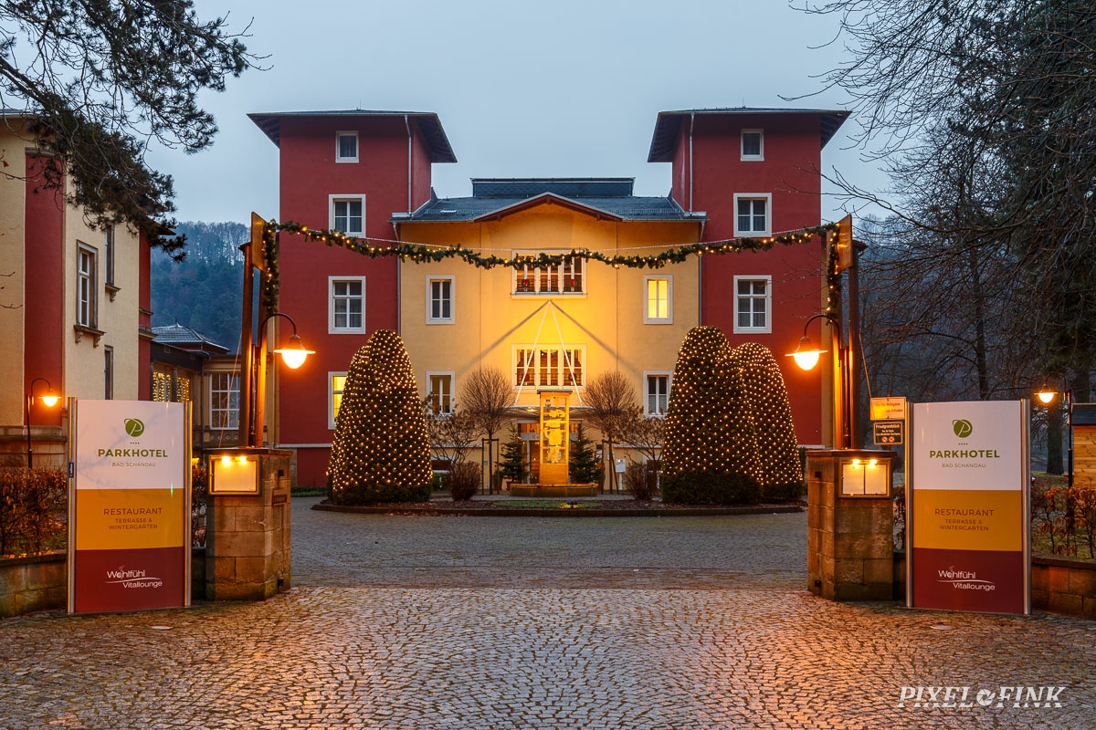 Abendaufnahme, Abendbelichtung, Abendstimmung, Bad Schandau, Blaue Stunde, Elbe, Toskana-Therme, Winter