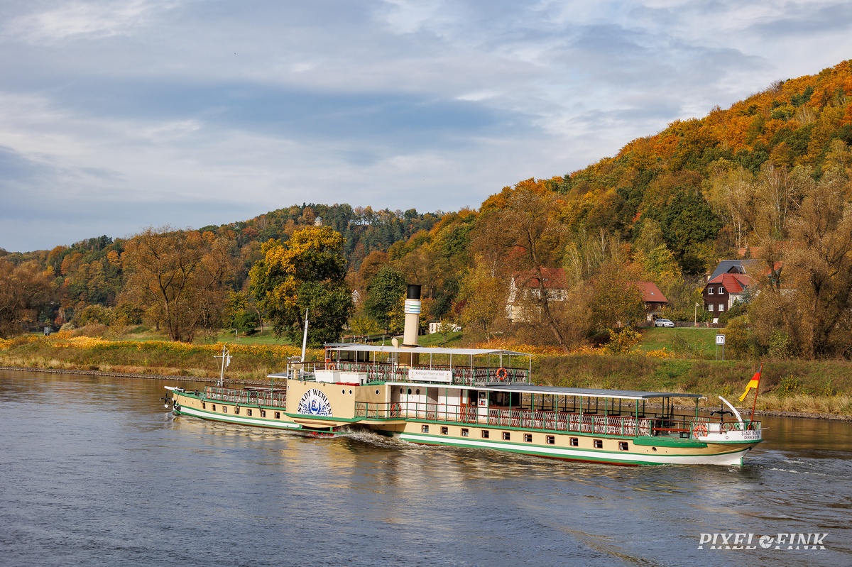 Elbe, Elbraddampfer, Elbraddampfer-Stadt Wehlen, Herbst, Passagierschiff