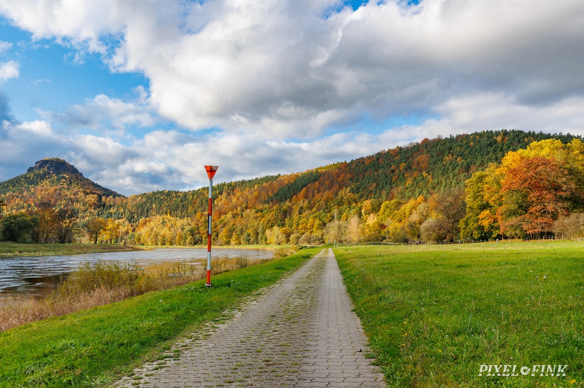 Elbe, Fluss, Flussufer, Herbst, Lilienstein, Prossen, Sächsische Schweiz, ländlich