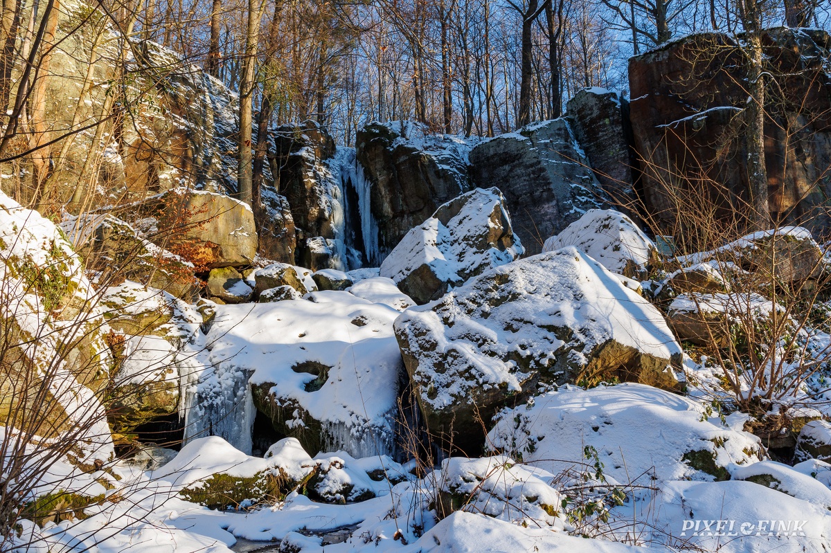Eiszapfen, Felsen, Langenhennersdorfer Wasserfall, Schnee, Sächsische Schweiz, Wasserfall, Winter