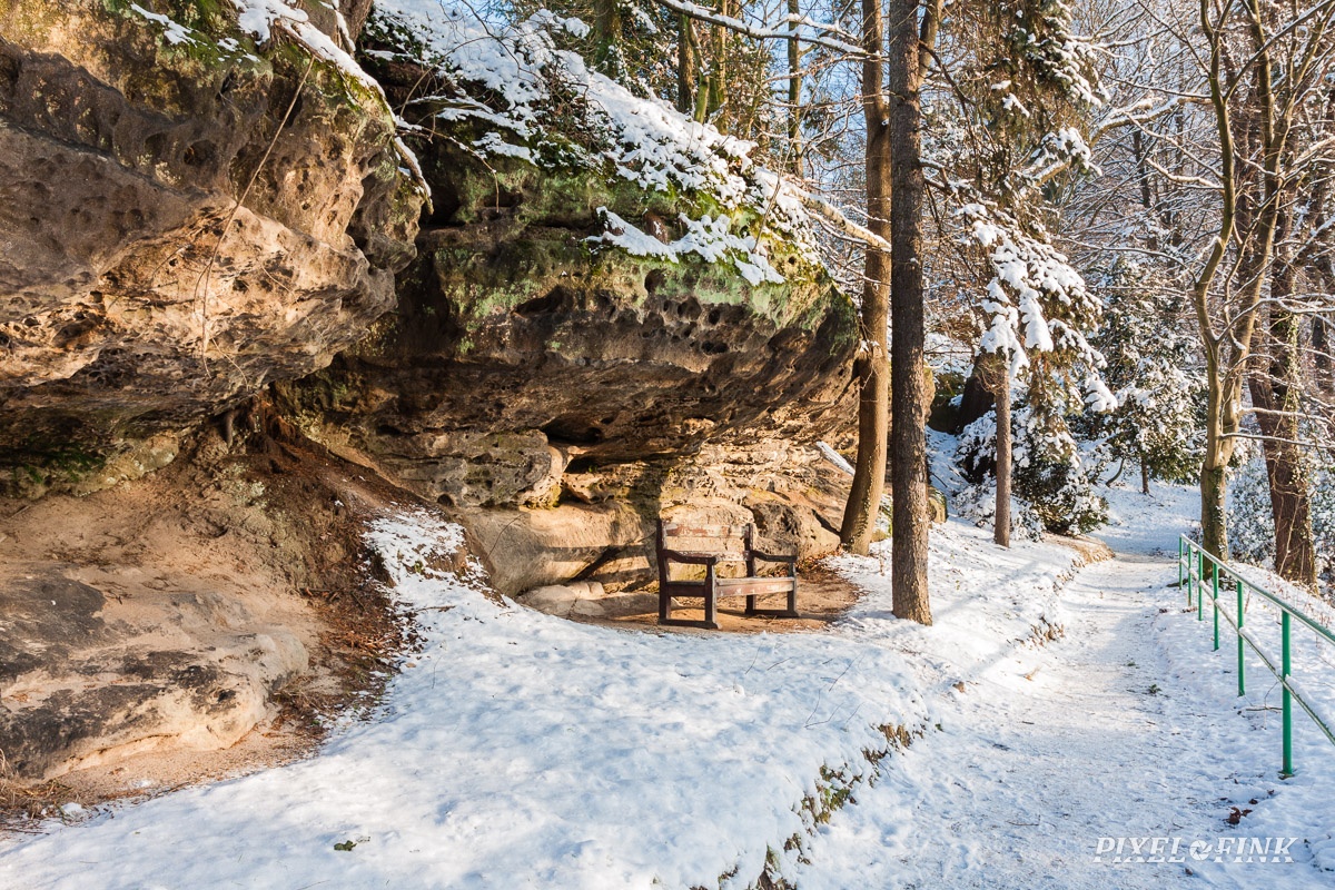 Bank, Felsen, Kleine Bastei, Kurort Rathen, Schnee, Sächsische Schweiz, Winter