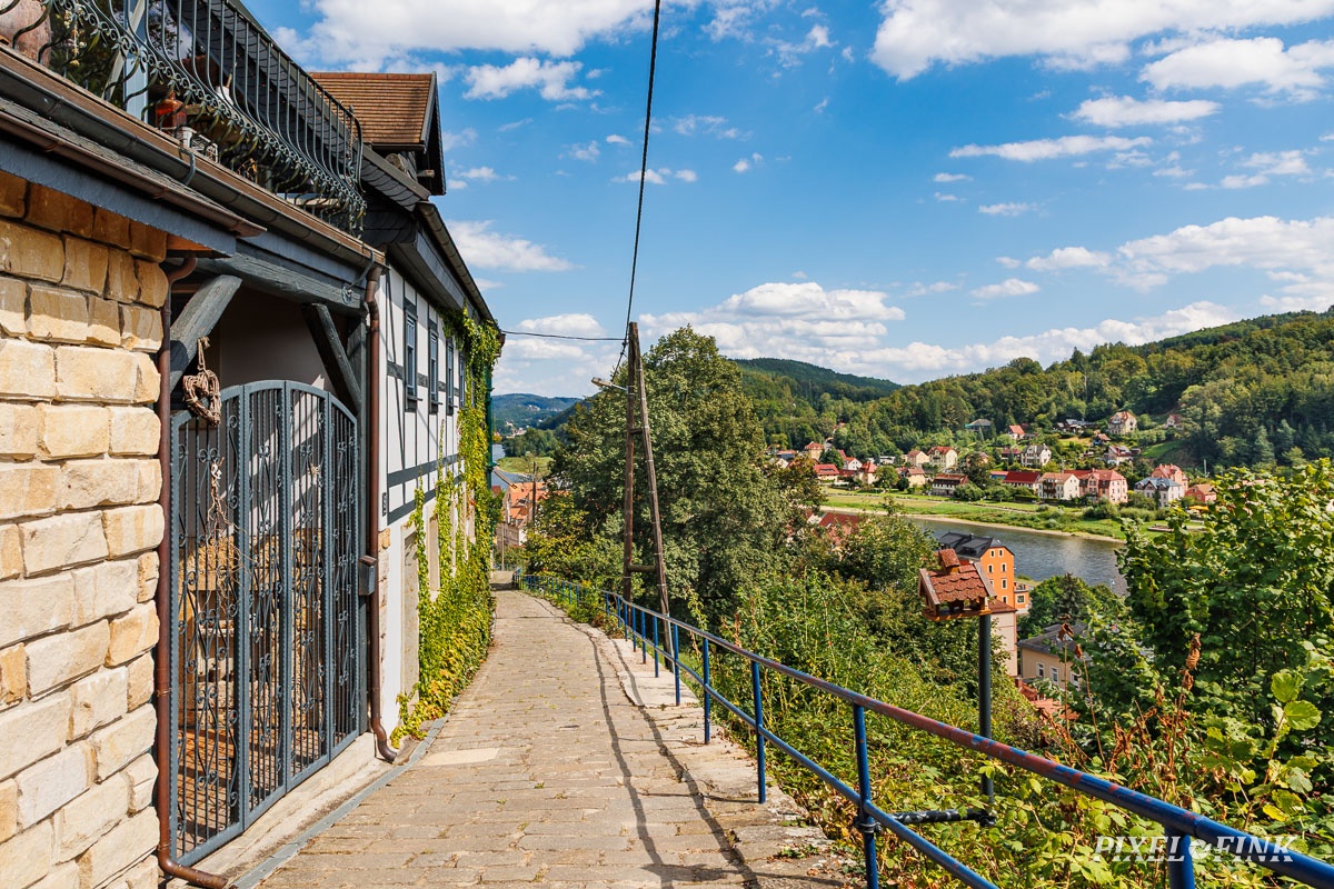 Hausberg, Herberge, Kunsthaus, Schützenhaus, Sommer, Stadt Wehlen, Sächsische Schweiz, Wanderer, Wanderweg