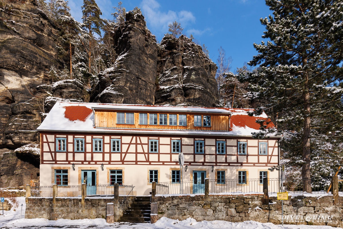 Nach dem Regen aufsteigender Nebel aus dem Elbtal bei Reinhardtsdorf-Schöna