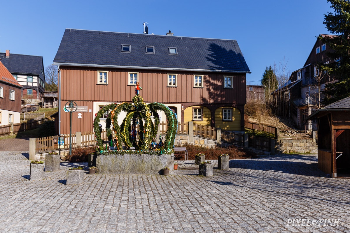 Fachwerkhaus, Frühling, Hinterhermsdorf, Osterbrunnen, Umgebindehaus