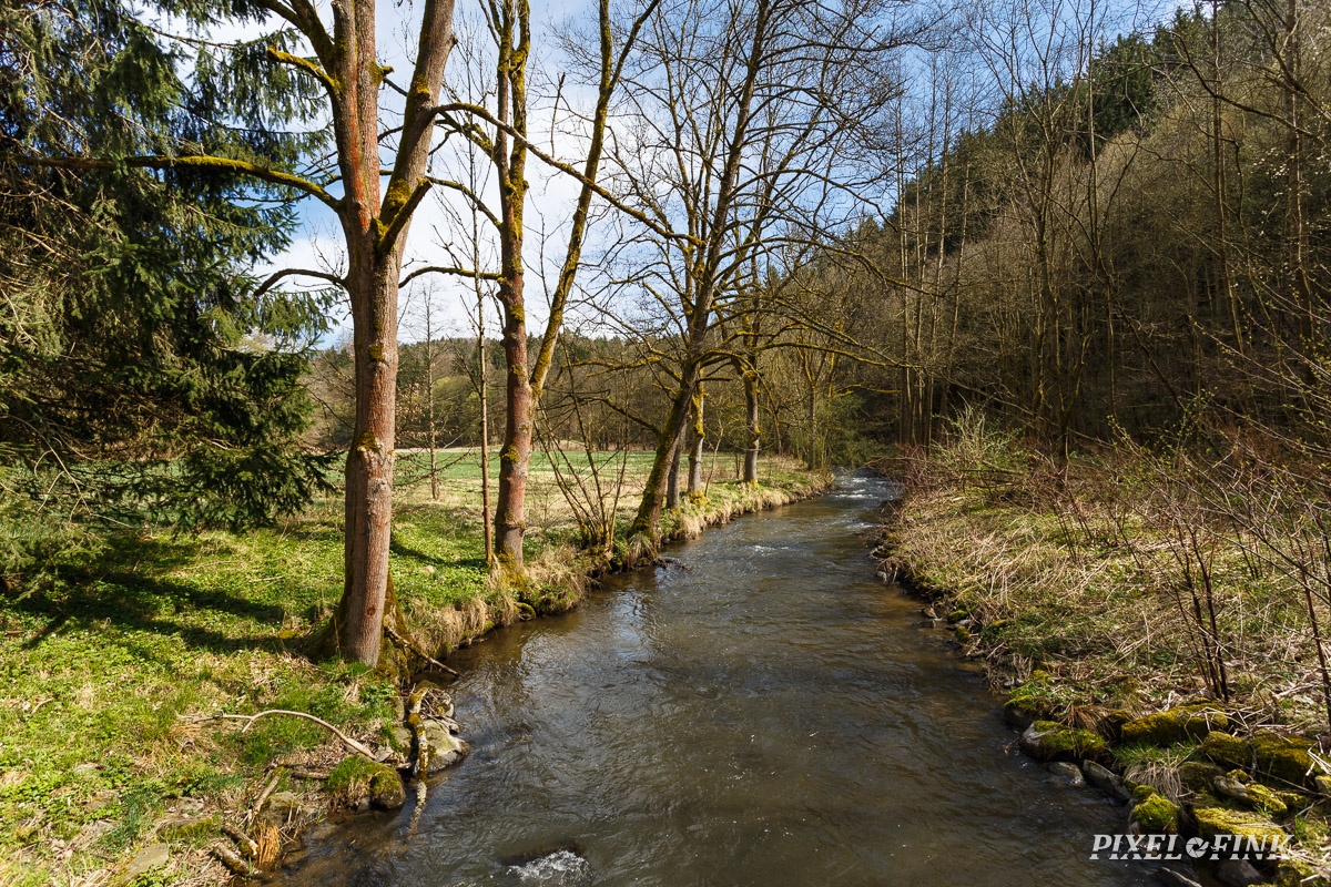 Bachübergang, Frühling, Goßdorfer Raubschloss, Natur, Sebnitzbach, Sebnitzbachtal, Sächsische Schweiz, Wanderweg