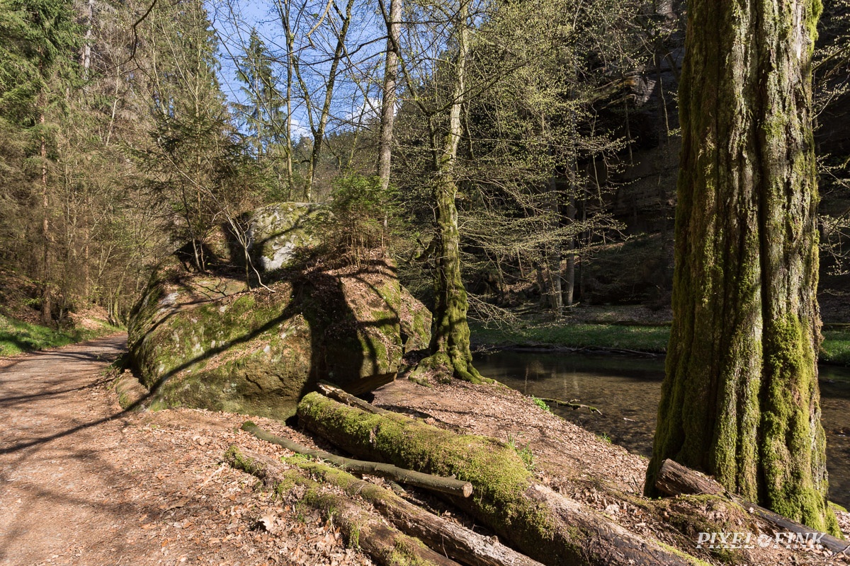 Bach, Bachlauf, Felsen, Frühling, Polenz, Polenztal, Wanderweg