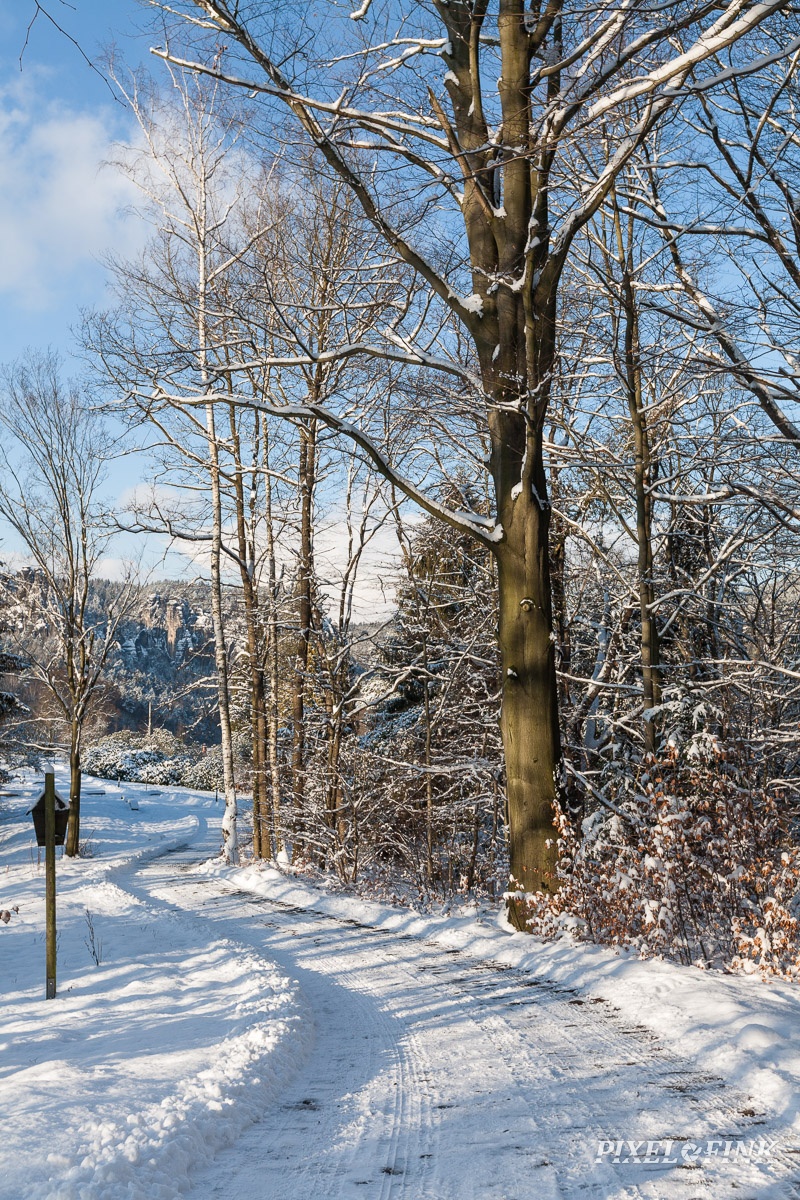 Kleine Bastei, Kurort Rathen, Rhododendronpark, Schnee, Winter