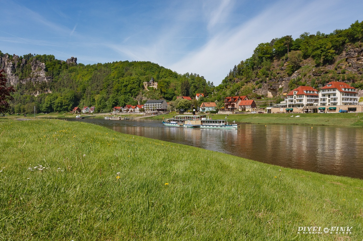Elbdampfer, Elbe, Elbufer, Frühling, Kurort Rathen, Sächsische Schweiz