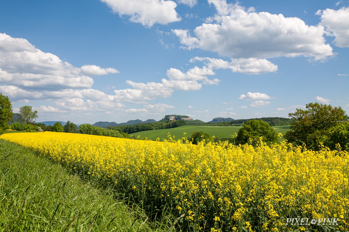 Festung Königstein, Kulturlandschaft, Rapsblüte, Rapsfeld