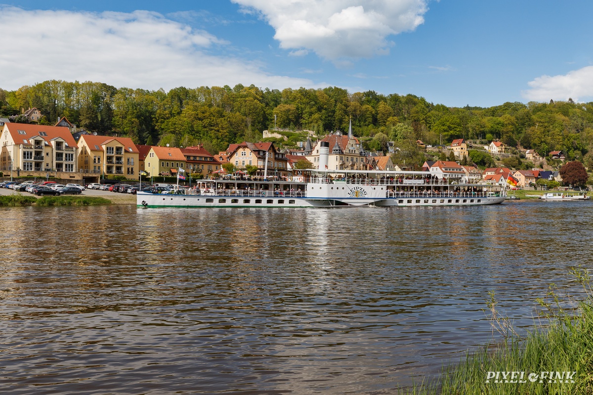 Elbe, Elbraddampfer, Elbraddampfer-Leipzig, Elbradweg, Frühling, Stadt Wehlen, Sächsische Schweiz